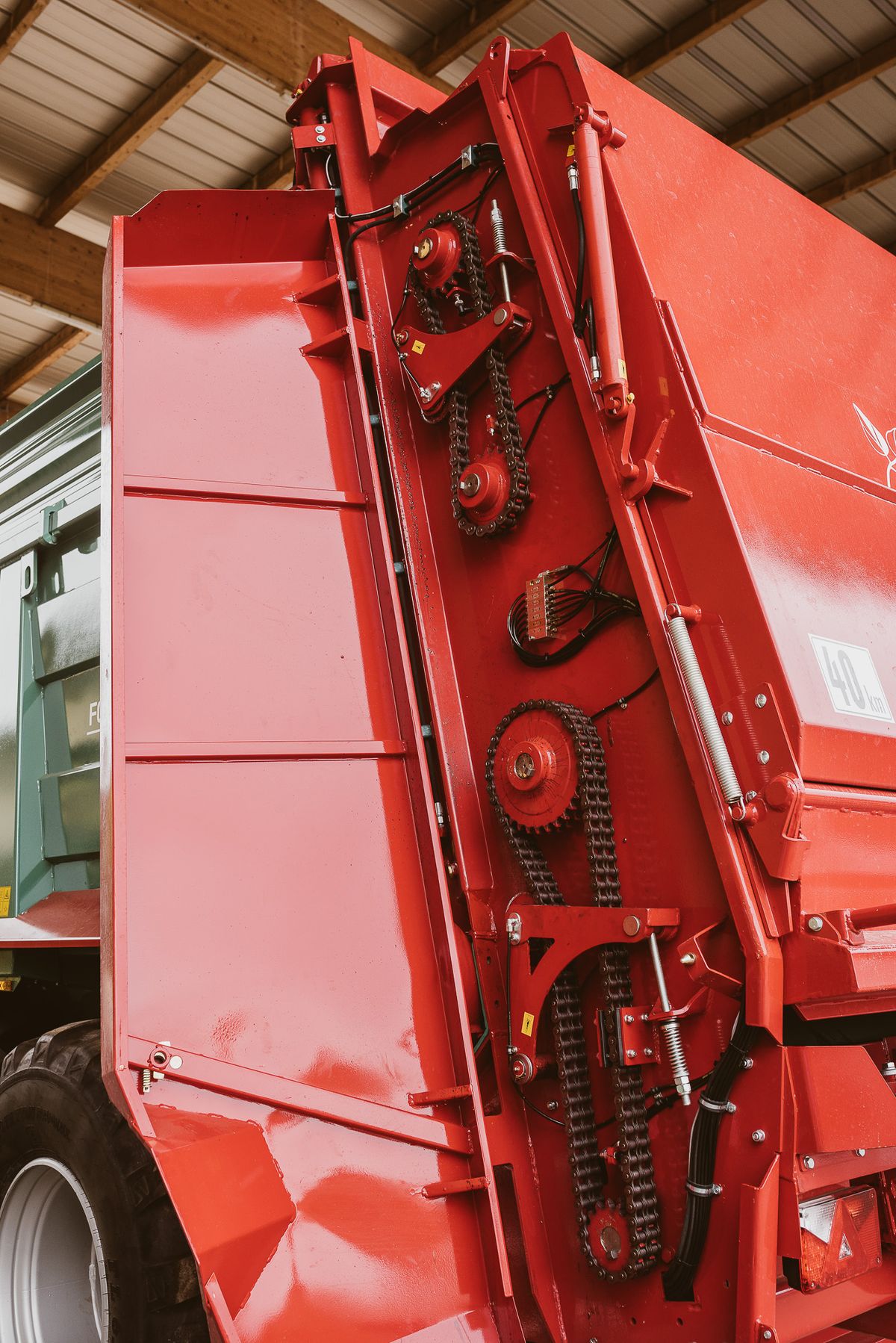 | Függőleges szórószerkezet 4 tépőhengerrel, HARDOX® késekkel, hidraulikusan mozgó ajtóval a szórószerkezet előtt, elektromágneses irányítással - szórásszélesség 12 m | Rendelhető opciók |