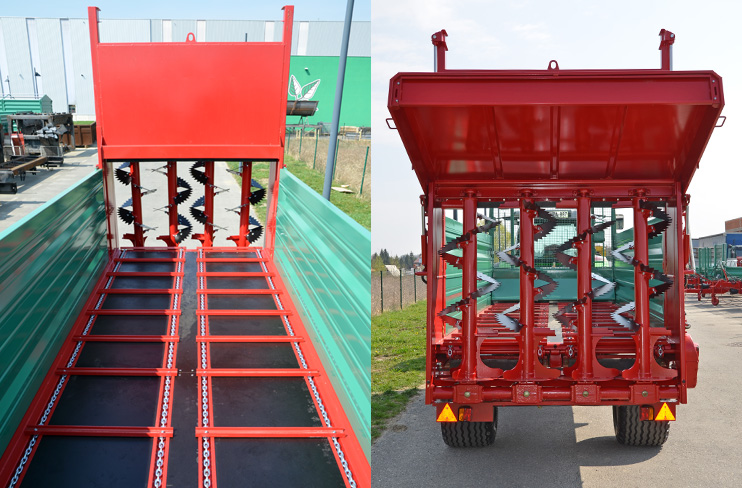 | Hidraulikus nyitású függőlegesen mozgó ajtó a szórószerkezet előtt | Rendelhető opciók |